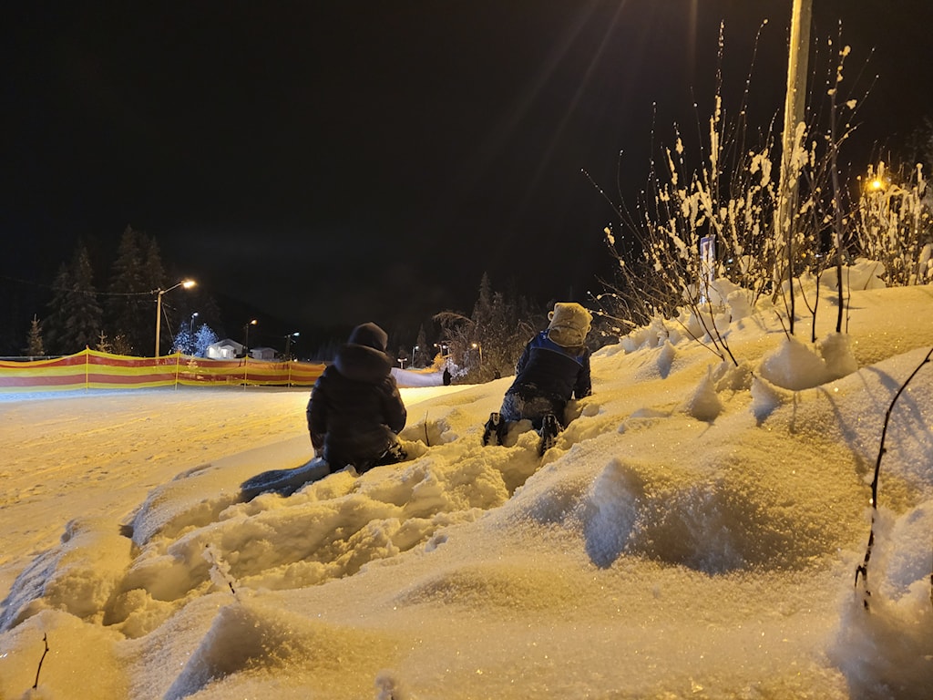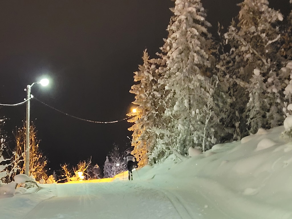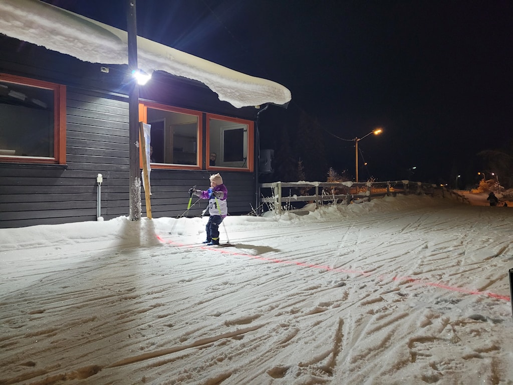 Litt OL-på-Lillehammer-stemning på Svea i dag - med lett dryssende snøflak over løyper, løpere og tilskuere.