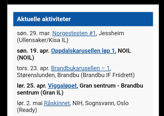 Sjøl om våren har kommet og snøforholdene har gjort det vanskelig å få gått på ski, er det ingen grunn til å ligge inne på sofaen. I tillegg til treninger for de eldste og helge-langturer er det mange arrangement i distriktet som kan være aktuelle. Sjekk lista over aktuelle arrangement på framsida vår: